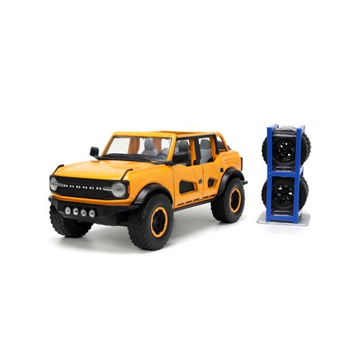 Just Trucks 2021 Ford Bronco Yellow 1:24 Scale Die-Cast Metal Vehicle with Tire Rack